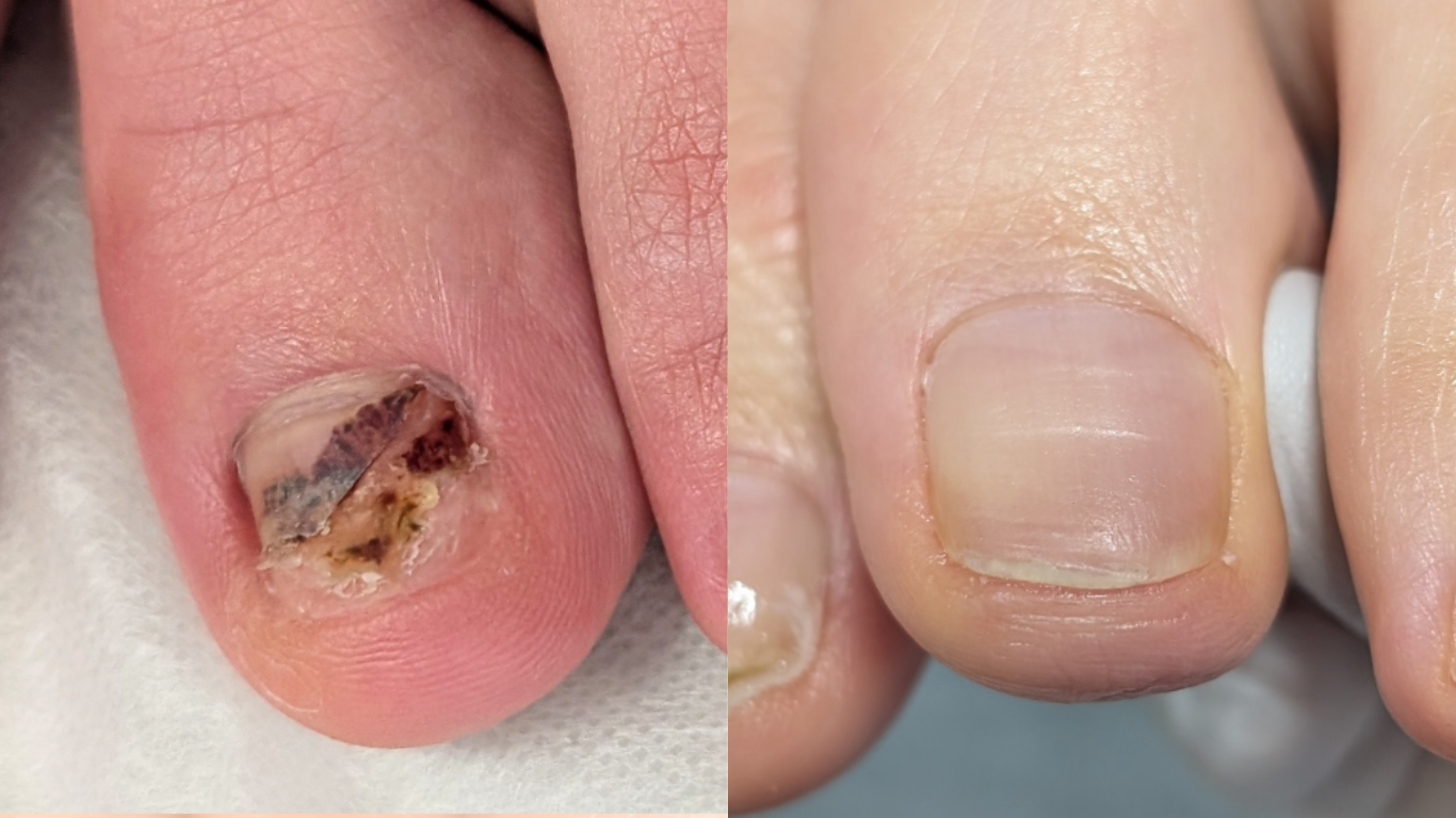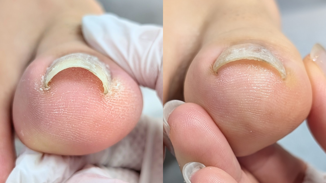 一般的な巻き爪補正の場合、爪を広げすぎたことによる剥離のリスクや、補正具が外れて怪我をする2次リスクが起こる場合がありました。