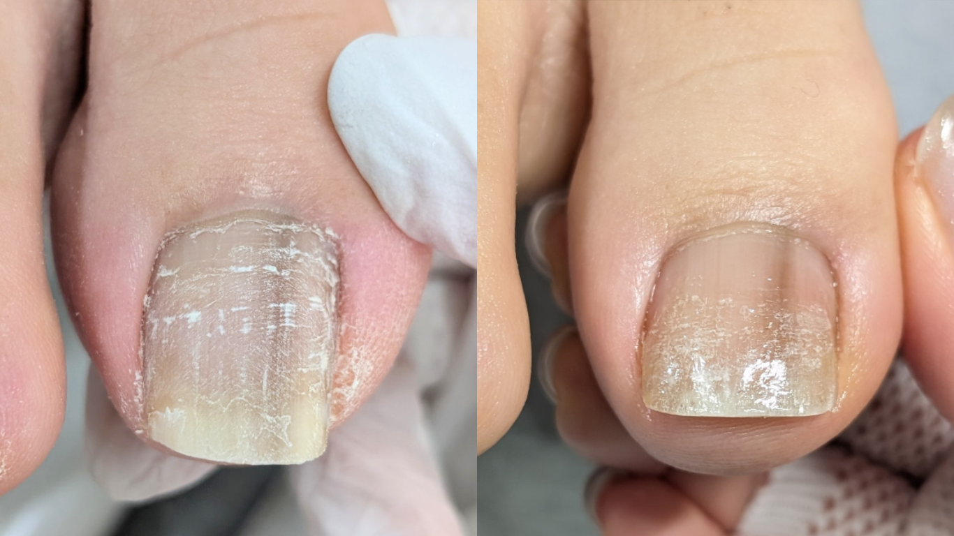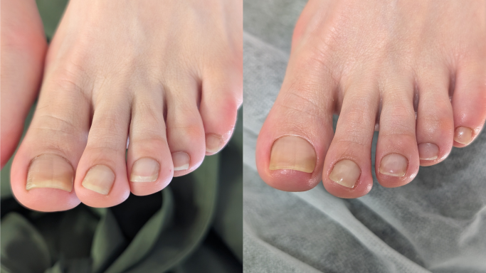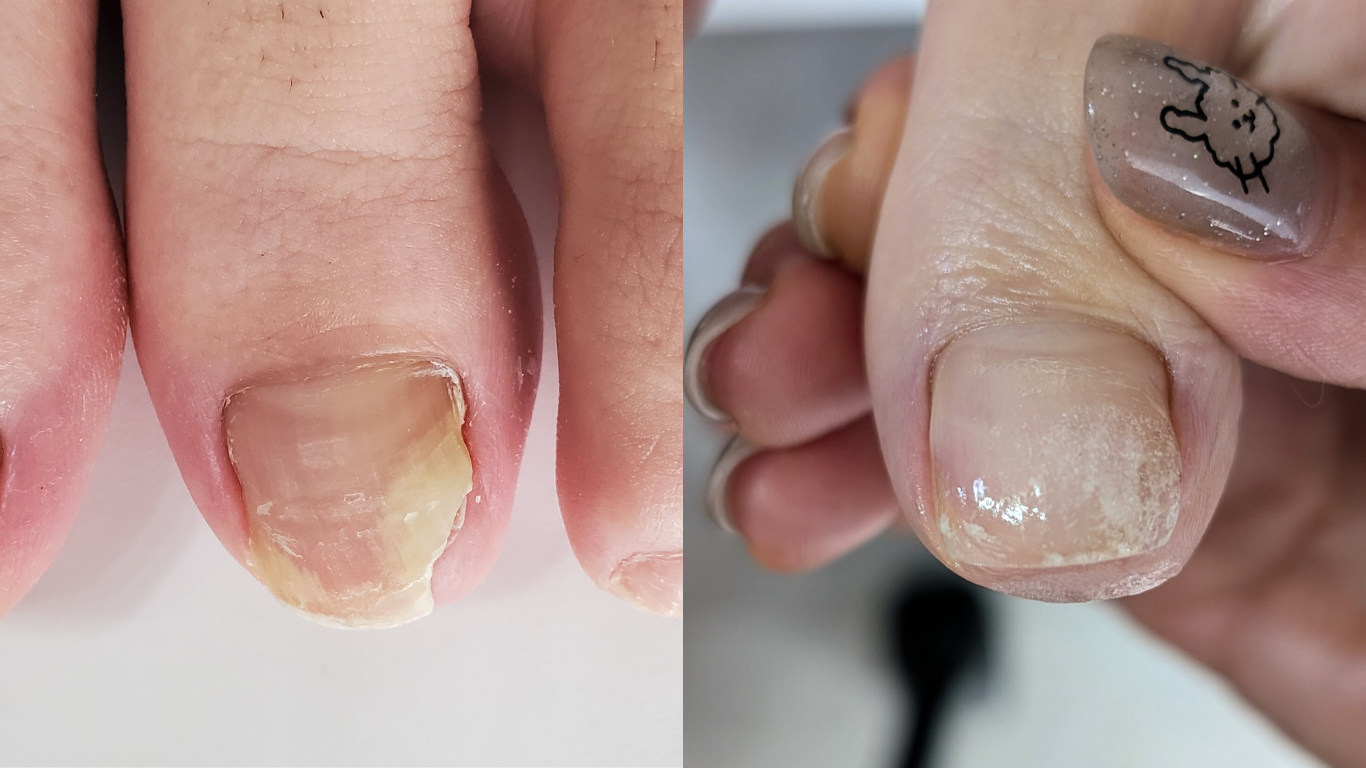 フットケアで爪周りの角質ケアや綺麗な爪が生えてくるようにケアをしてもらっているので、だんだんと健康的な爪に変わってきているように思います。