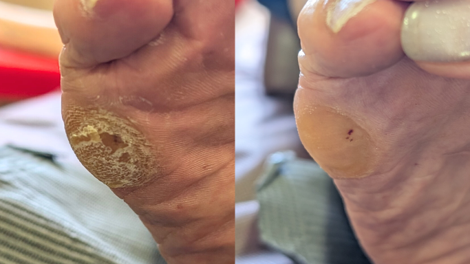 ガチガチになって歩くのも痛いタコを除去、