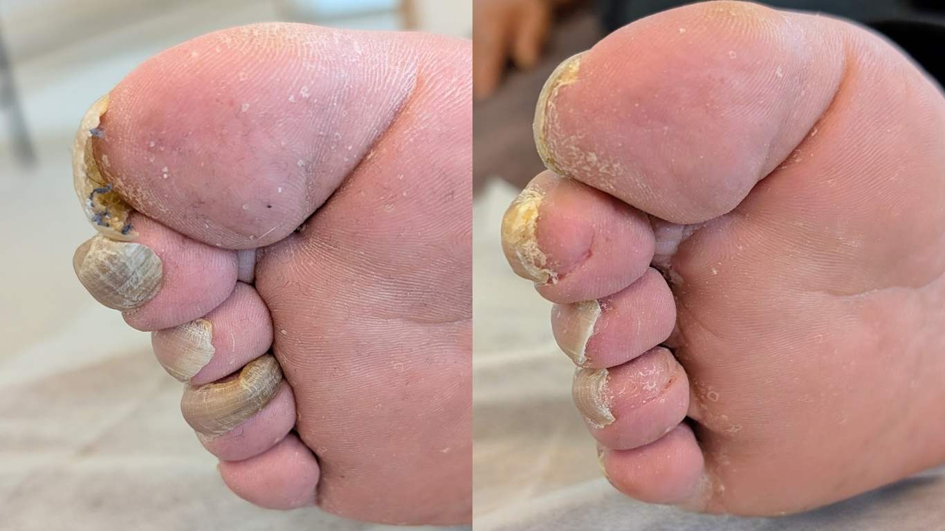 ・カチカチの角質を放置することで爪の形に影響が出る